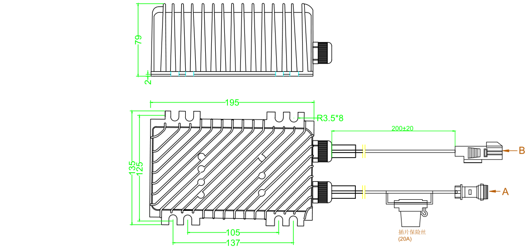 產品尺寸:204(長)x140(寬)x65(高)(自然冷)