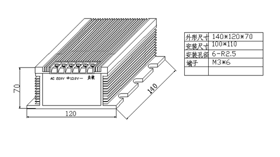 電源尺寸:140mm×120mm×70mm