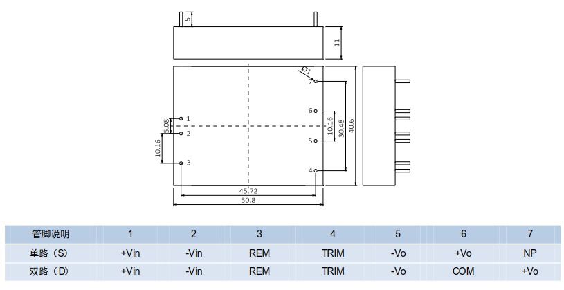 安裝尺寸(單位:mm)及管腳定義: