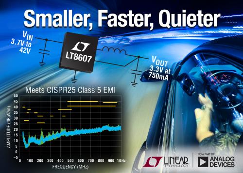 ADI推出 750mA、42V 輸入同步降壓型開關(guān)穩(wěn)壓器 LT8607