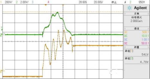 目前測試了一下,電流達到350A,瞬間30us左右,如果前面是IGBT開關用,擔心損壞