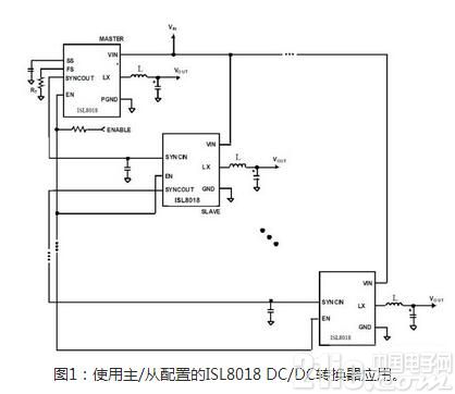 如圖1所示,轉換器1是“主”轉換器,它為其余的“從”轉換器提供設定頻率。