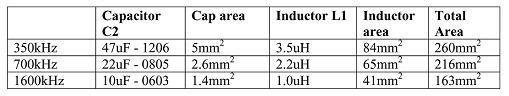 表格3顯示了感應器和電容器的數值,以及PCB所需板面面積