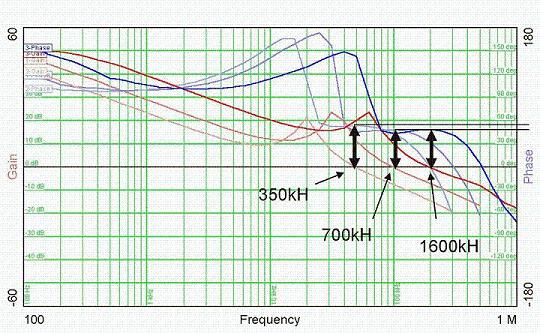 圖3:批量為350 kHz, 700 kHz和1600 kHz.時的波德圖