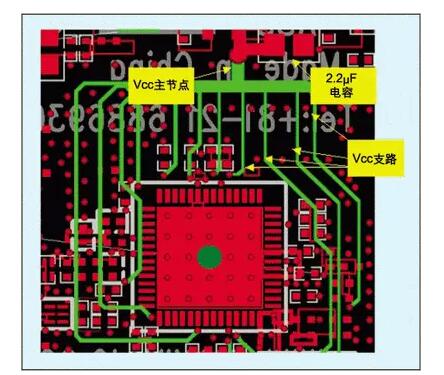 (13)大面積的電源層能夠使Vcc布線(xiàn)變得輕松,但是,這種結(jié)構(gòu)常常是引發(fā)系統(tǒng)性能惡化的導(dǎo)火索,在一個(gè)較大平面上把所有電源引線(xiàn)接在一起將無(wú)法避免引腳之間的噪聲傳輸。反之,如果使用星型拓?fù)鋭t會(huì)減輕不同電源引腳之間的耦合。