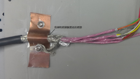 從安全方面考慮,三個機(jī)柜都必須接大地,強(qiáng)電線路與信號線分開避免干擾這些都是要遵循的基本原則。實(shí)際機(jī)柜間位置較遠(yuǎn),接地對于高頻干擾改善不多,只作為安全措施。解決這種問題一般考慮是從干擾源、傳播路徑、敏感設(shè)備三方面著手。驅(qū)動器和功率分析儀是成型的設(shè)備,不便于改動,考慮從傳播路徑入手,使用多芯屏蔽電纜連接扭矩傳感器到測控柜,傳感器端屏蔽層連接到傳感器外殼,也與電機(jī)平臺連通,另一側(cè)屏蔽層接到測控柜機(jī)殼。最初的時候屏蔽層通過一根較長的線連接到測控柜,發(fā)現(xiàn)并沒有改善,最后使用銅片將整根線壓到機(jī)柜,干擾得到很大衰減。