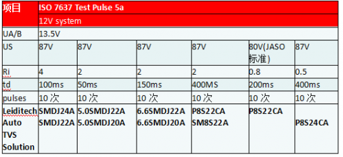 表一 12V系統(tǒng)TVS測試通過表