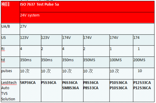 表二 24V系統(tǒng)TVS測試通過表