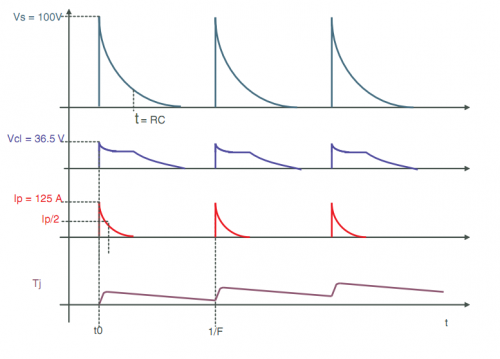 Ip=125A 表示通過TVS的瞬時大電流達(dá)到125A,因?yàn)門VS器件的導(dǎo)通,大電流的流過,使得非常強(qiáng)的浪涌得到泄放,電路安全。