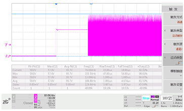 圖3 起機瞬態(tài)時MOS管波形Vds_max=59V